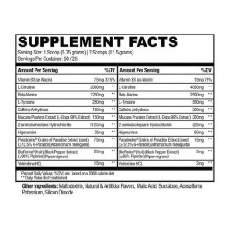 | Gebruik in de sport | Wordt gebruikt als pre-workout stimulant |