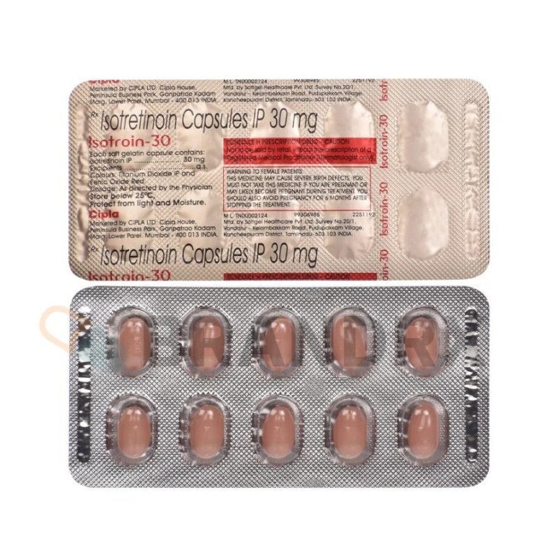 | Bijwerkingen | Droge huid, lippen en ogen, jeuk, neusbloedingen, spierpijn, gevoeligheid voor zonlicht, verminderd nachtzicht, mogelijk ernstige geboorteafwijkingen bij inname tijdens de zwangerschap |